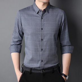 2021新款暗格子衬衫男士商务职业工装翻领衬衣日常...