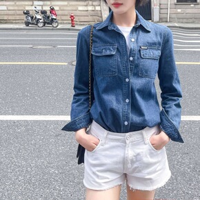 2021春秋新款牛仔衬衫女长袖设计感小众衬衣大码宽...
