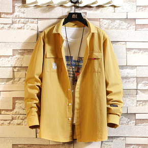 男装秋上新2020棉日系灯芯绒男士衬衫修身休闲衬衣...