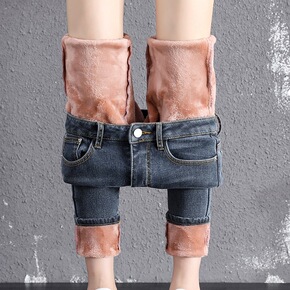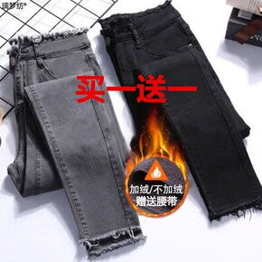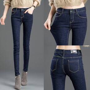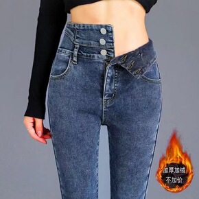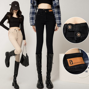 加绒加厚新塘牛仔裤女新款秋冬高腰外穿紧身小脚铅笔裤...
