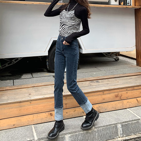 发热德绒!黑科技面料!高腰直筒烟管氨纶弹力棉牛仔裤...