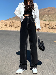 黑色牛仔裤女直筒宽松秋季2022年新款显瘦拖地高腰...