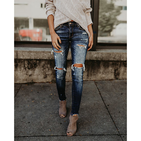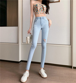 2022新款春秋弹力破洞牛仔裤女小脚裤紧身牛仔裤女...