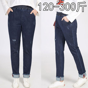 胖mm300斤牛仔裤特大码女裤松紧腰长裤加肥加大码...