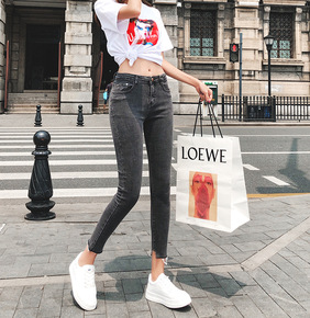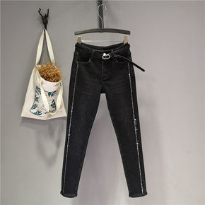 牛仔裤女小脚高腰薄款链新款束脚ins显瘦黑九分弹力...