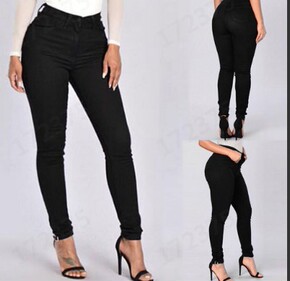 速卖通亚马逊新款外贸女装黑色弹力牛仔裤女小脚裤紧身...