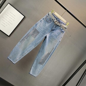 2020秋冬新款女式牛仔裤九分哈伦裤小脚打底裤韩版...