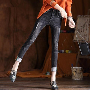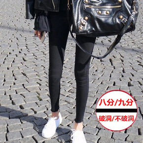 牛仔裤女装韩版新款黑色弹力紧身显瘦时尚破洞毛边八分...