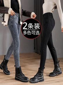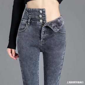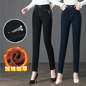 2021冬季新款弹力牛仔裤女小脚裤高腰显瘦加绒大码...