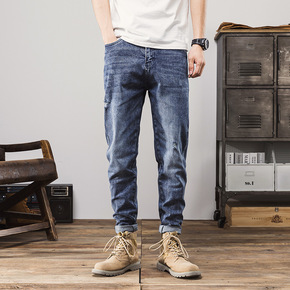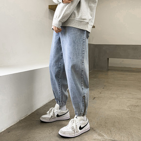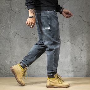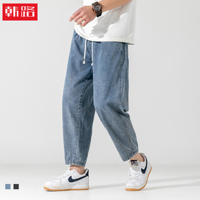 牛仔裤男士宽松哈伦束脚裤子男2022新款潮牌休闲青...