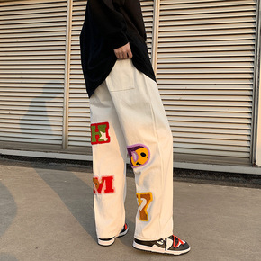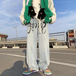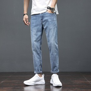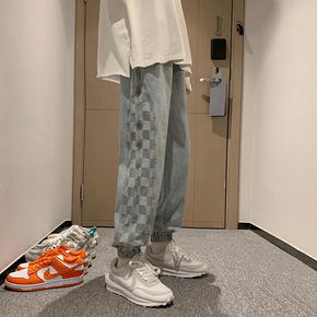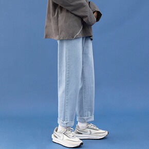 春夏季新款浅蓝色牛仔裤男士潮牌青少年宽松直筒百搭九...