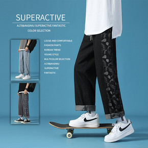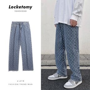 LKTM男装#腰果花牛仔裤男春季ns潮流拖地长裤宽...