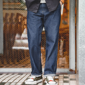 马登工装日系复古丹宁水洗直筒牛仔裤宽松中腰耐磨高街...