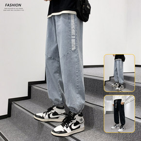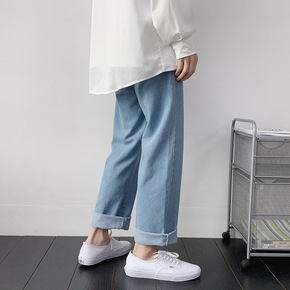 秋季牛仔裤男潮牌ins直筒宽松韩版潮流百搭九分裤子...