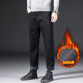 秋冬加厚款男士休闲牛仔裨男 四面微弹修身直筒青年长...