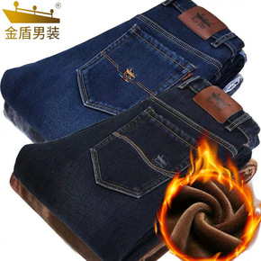 金盾王朝牛仔裤男冬季加绒加厚男士直筒修身大码中高腰...