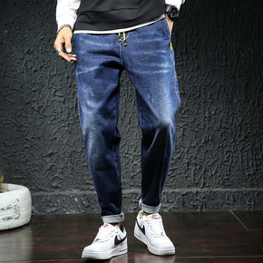 新塘牛仔2019秋冬新品男式牛仔裤加肥加大码松紧牛...