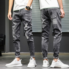 2021春季新款牛仔裤男士休闲裤韩版潮流修身小直脚...
