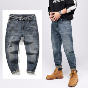 2021韩版修身潮流牛仔裤男青年休闲直筒宽松加厚牛...