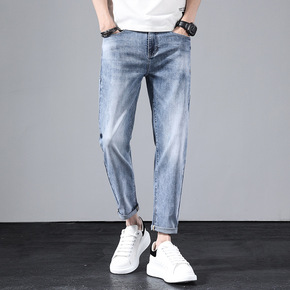 2022春夏新款牛仔裤小直筒修身时尚九分裤男裤H1...