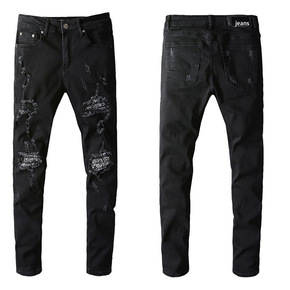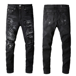 TREND AMIRI欧美外贸男装褶皱贴布牛仔裤...