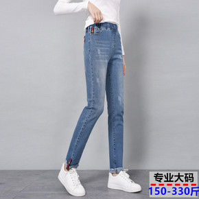 新品大码女装高腰修身弹力小脚牛仔裤秋 300斤提臀...