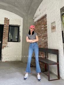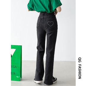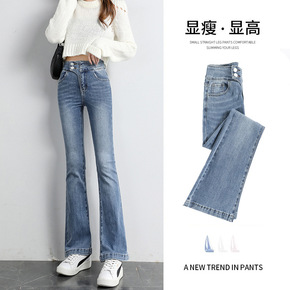 2021新款秋季高腰微喇女牛仔长裤宽松显高显瘦高腰...