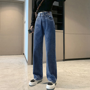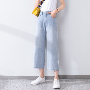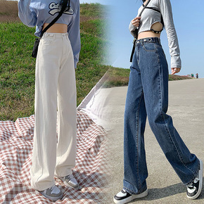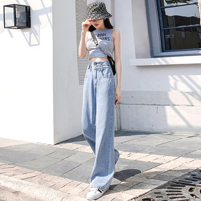 高腰显瘦阔腿裤牛仔裤女2021年新款春装浅色宽松垂...