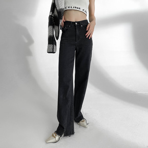 黑色阔腿牛仔裤女直筒宽松春秋装2021新款高腰显瘦...