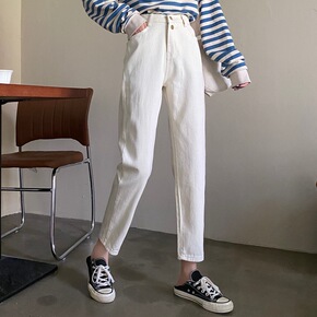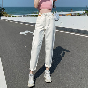 米白色哈伦牛仔裤女夏秋2022年新款高腰显瘦宽松大...