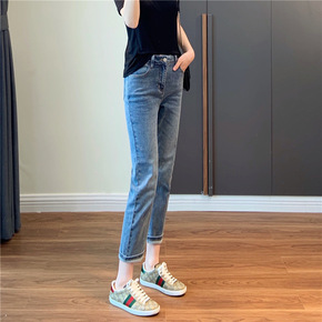 高腰牛仔裤女2022年新款显瘦紧身铅笔小脚韩版裤子...
