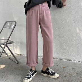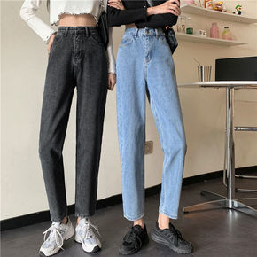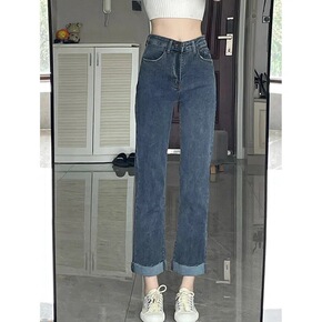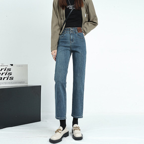 393新款秋冬裤子高腰牛仔裤女显瘦显高直筒裤宽松百...