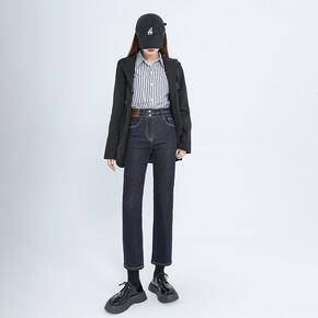 2022早秋欧美MO同款怀旧浅蓝色高腰紧身小脚九分...