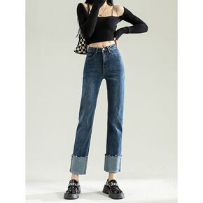 直筒牛仔裤女春秋季2022新款高腰显瘦百搭chic...