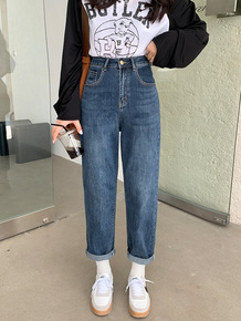 高腰显瘦简约百搭休闲牛仔裤女2022早秋新款宽松九...