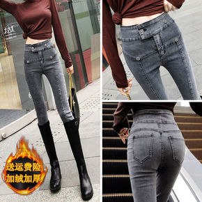 高品质烟灰色黑色牛仔裤女春秋季高腰韩版修身显瘦九分...