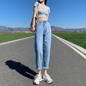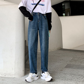 清仓早秋春秋新款哈伦裤高腰牛仔裤女韩版宽松大码女装...
