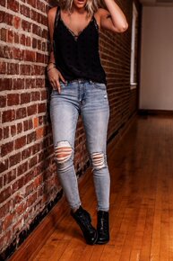 现货跨境独立站2021新款秋季休闲破洞洗水修身弹力...
