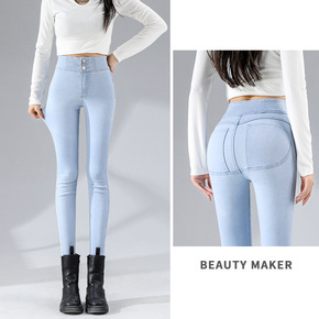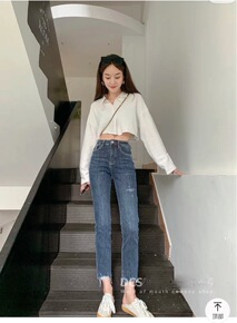 Wuuus腿精 浅色高腰小脚牛仔裤女2021年秋冬...