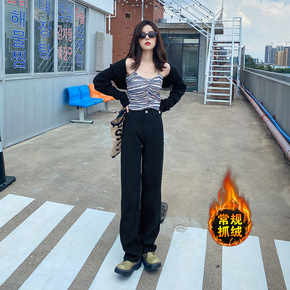 黑色微喇叭裤女春秋季2021年新款长裤高腰直筒宽松...