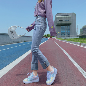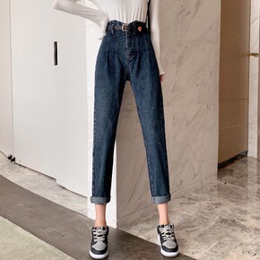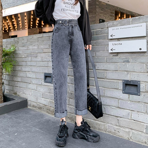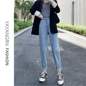 哈伦牛仔裤女夏装2021年新款高腰直筒显瘦chic...