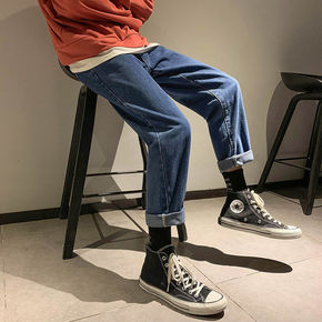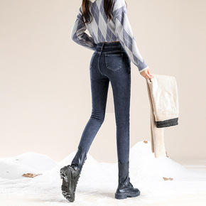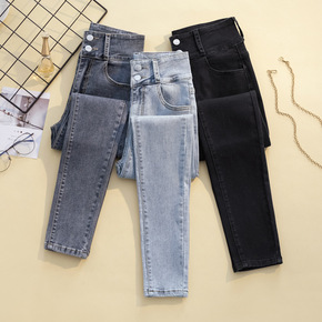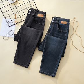 2021秋冬新款时尚学生装紧修身牛仔裤新款黑色显瘦...