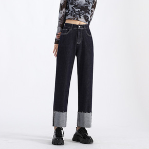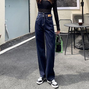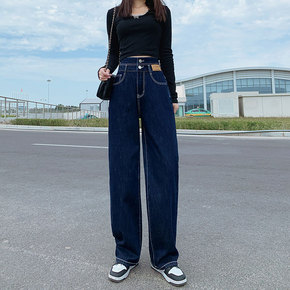 黑色高腰阔腿牛仔裤女春秋直筒宽松秋装2021年新款...