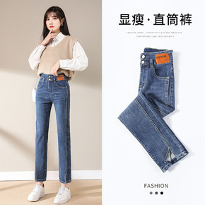1217 秋季新款品牌高腰高弹直筒牛仔裤女显瘦优雅...