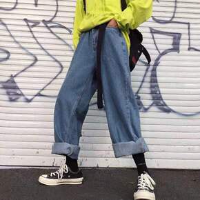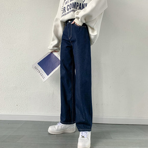 阔腿牛仔裤女宽松韩版学生秋季新款大码胖mm显瘦直筒...