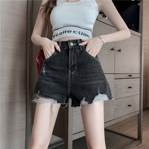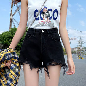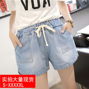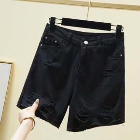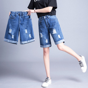 大码女装2022年夏新款胖妹妹mm破洞弹力高腰牛仔...
