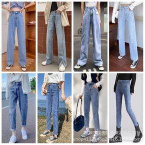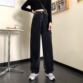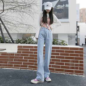 烟灰色牛仔裤女春季2021新款学生韩版宽松高腰显瘦...