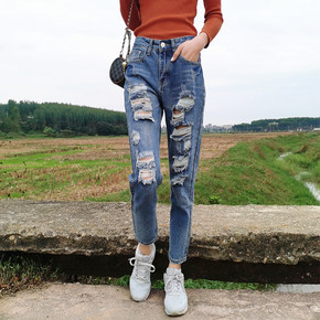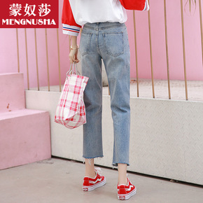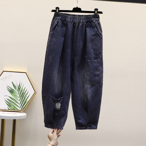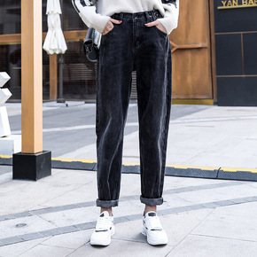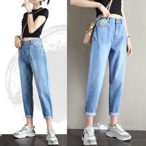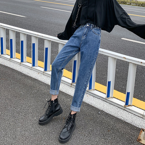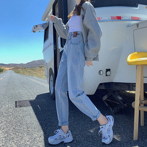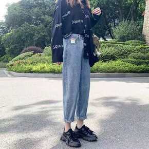 2021春秋高腰牛仔裤裤女宽松显瘦哈伦学生潮烟管小...