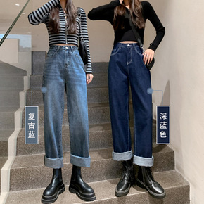 牛仔裤女老爹裤2021新款春秋显瘦高腰宽松百搭直筒...