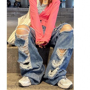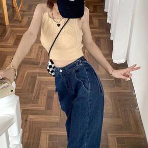 太系列女士时尚2021春新款宽松阔腿高腰牛仔裤女A...